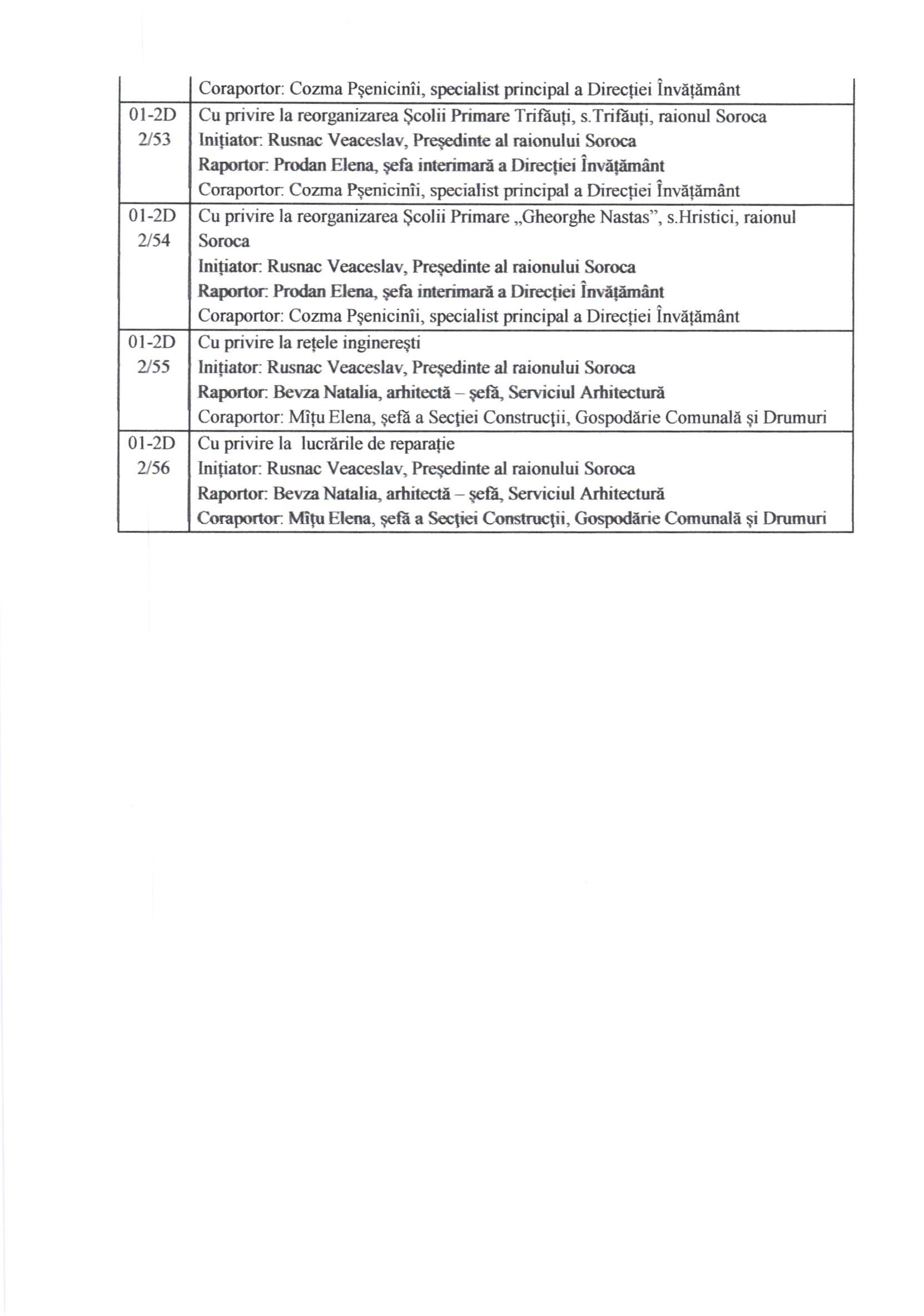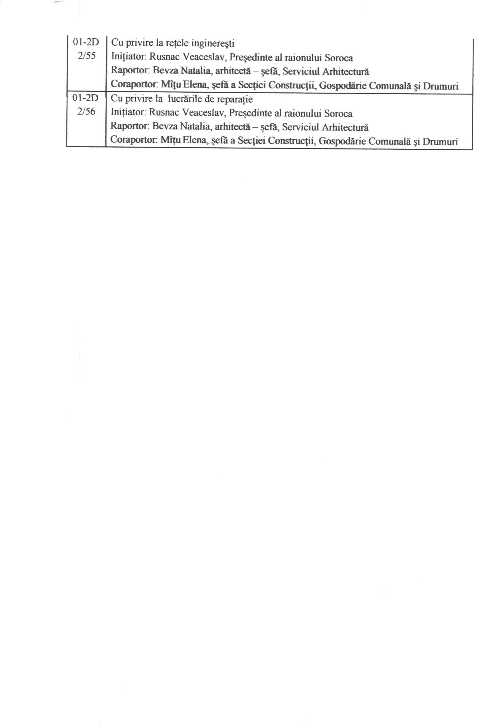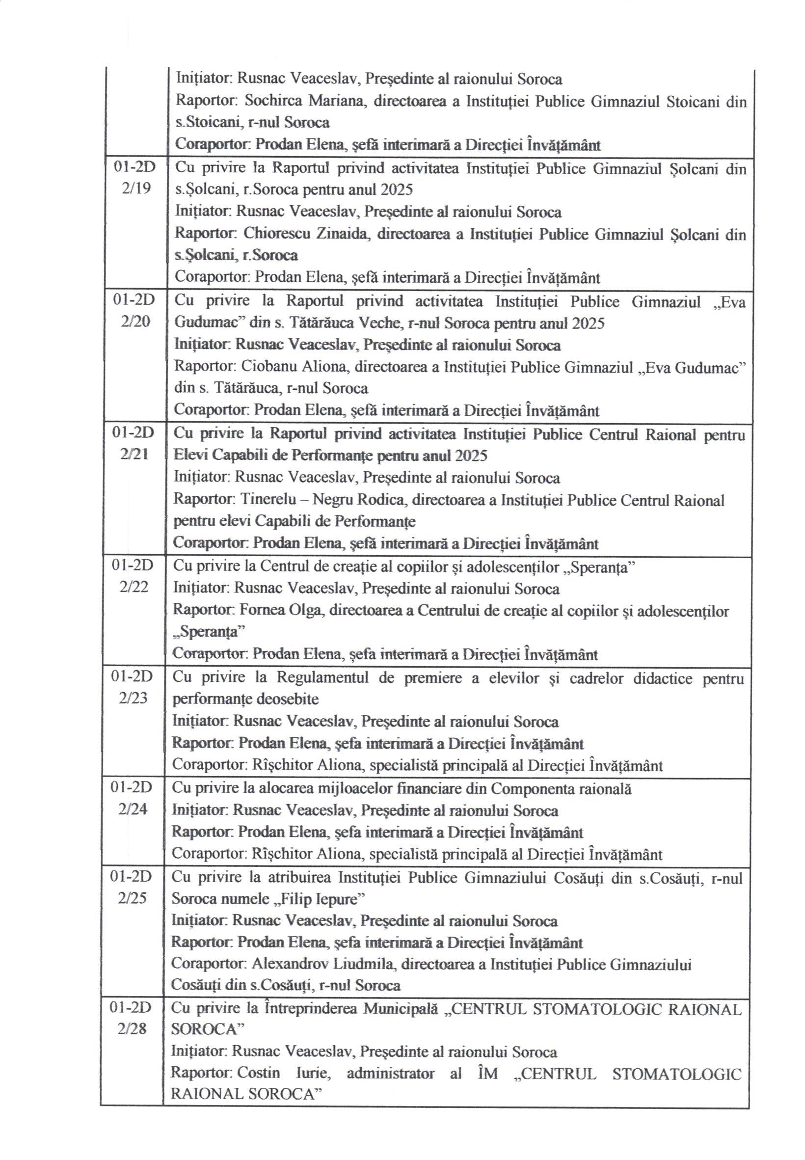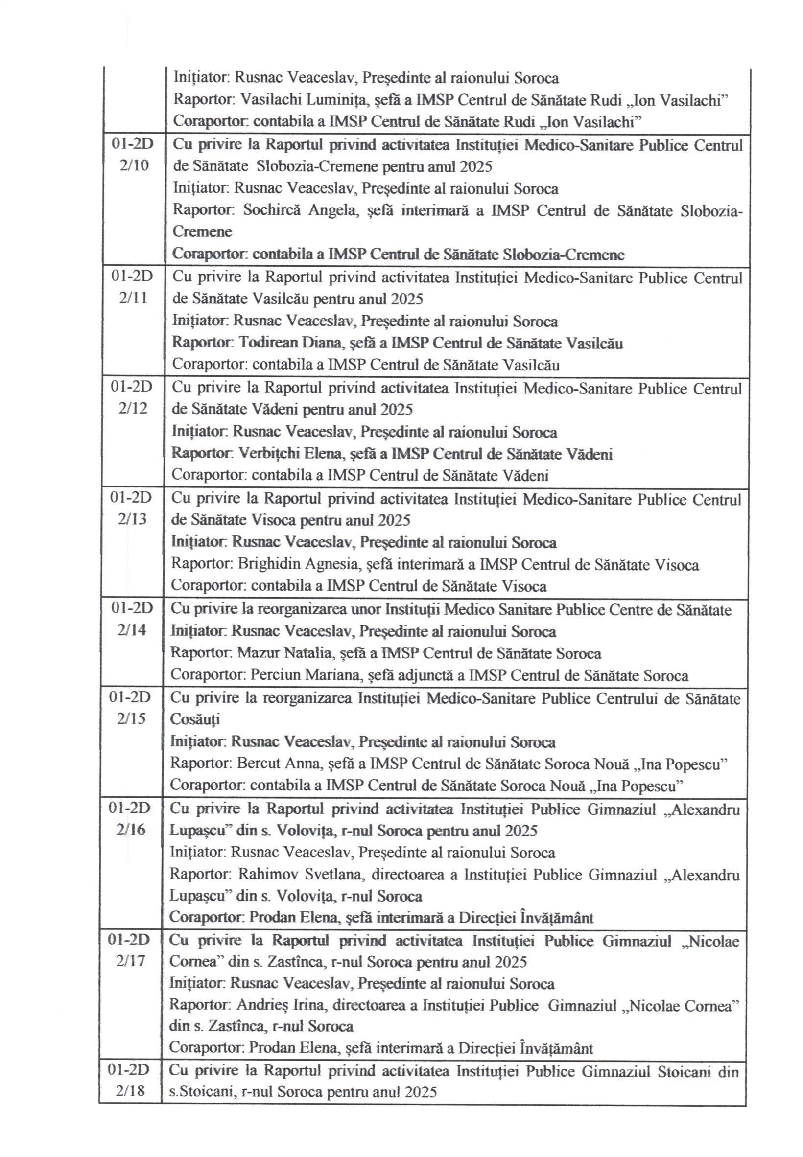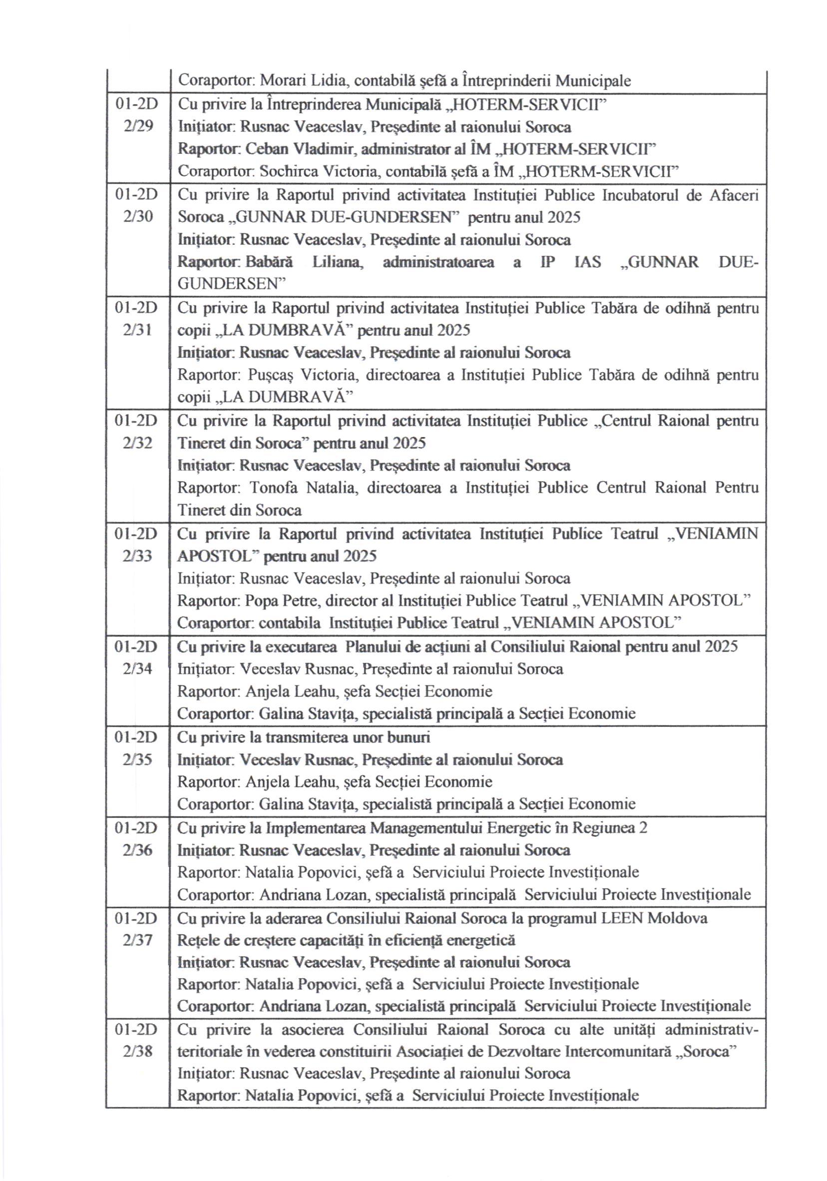 Ăn conformitate cu prevederile art.45 alin.(1) și (3) din Legea nr.436/2006 privind administrația publică locală, cu modificările ulterioare, Vă informăm, că prin Dispoziția Președintelui Raionului Soroca nr.39 din 06 aprilie 2026, cu modificările ulterioare Consiliul Raional Soroca se convoacă în ședință ordinară la data de 06 mai 2026, ora 1000 , în incinta Consiliului Raional Soroca, sala de ședințe, etajul I.