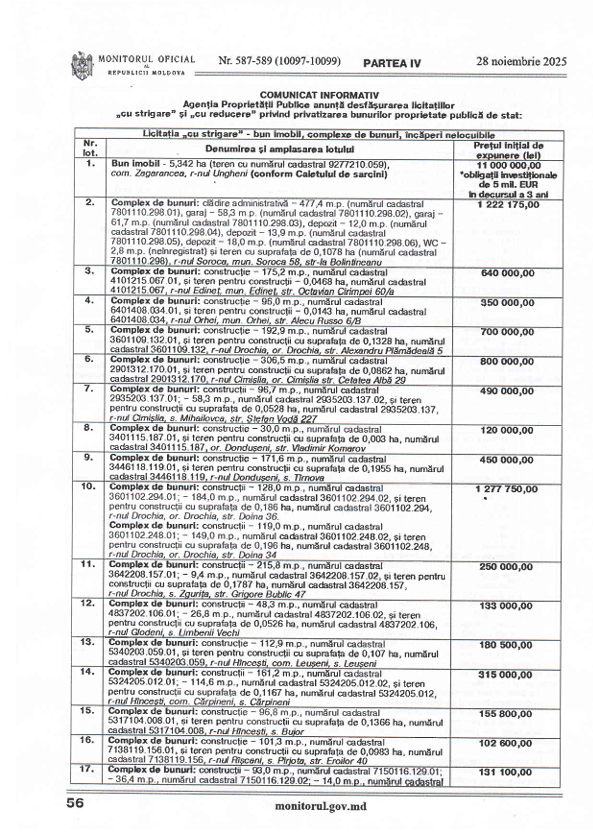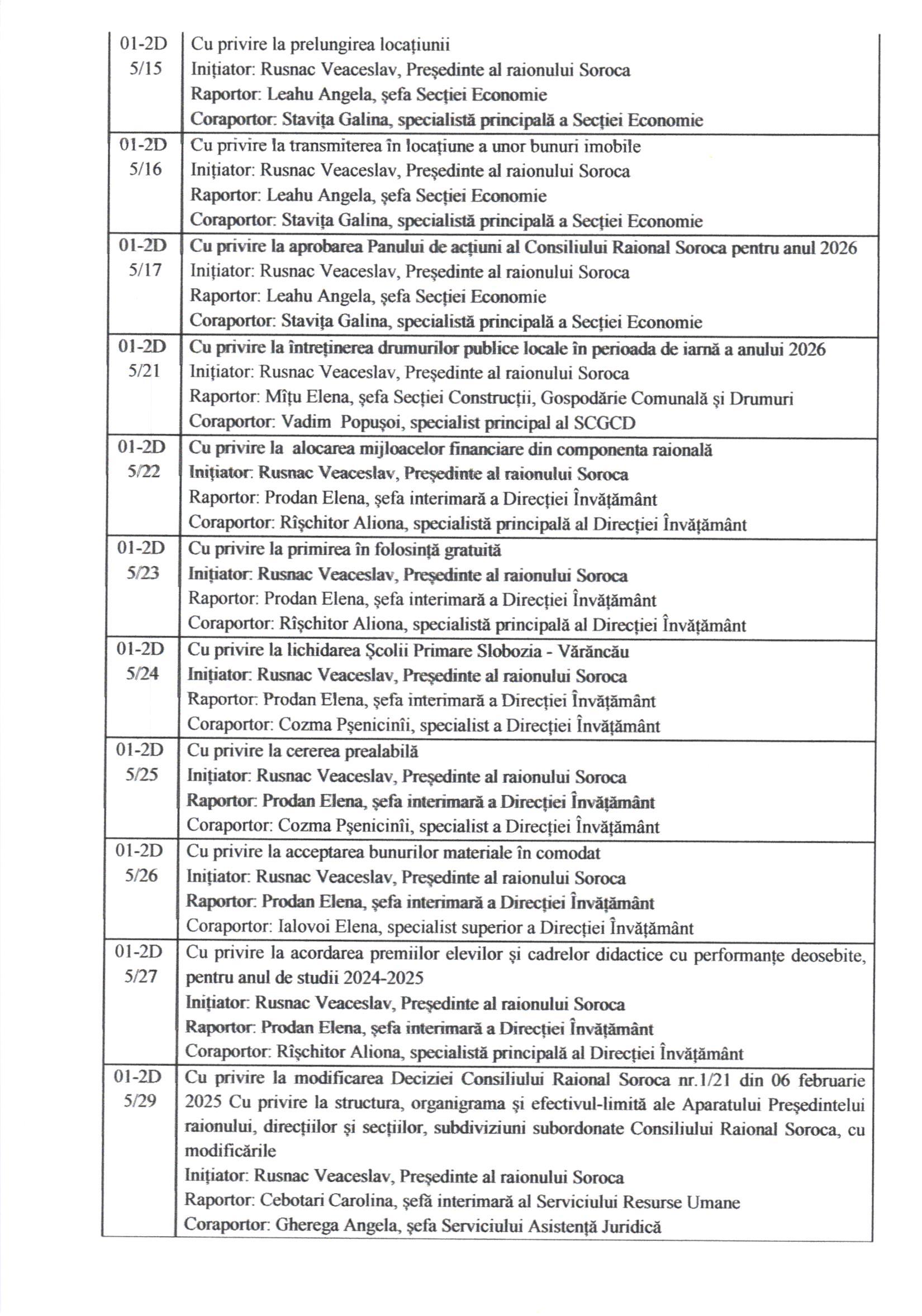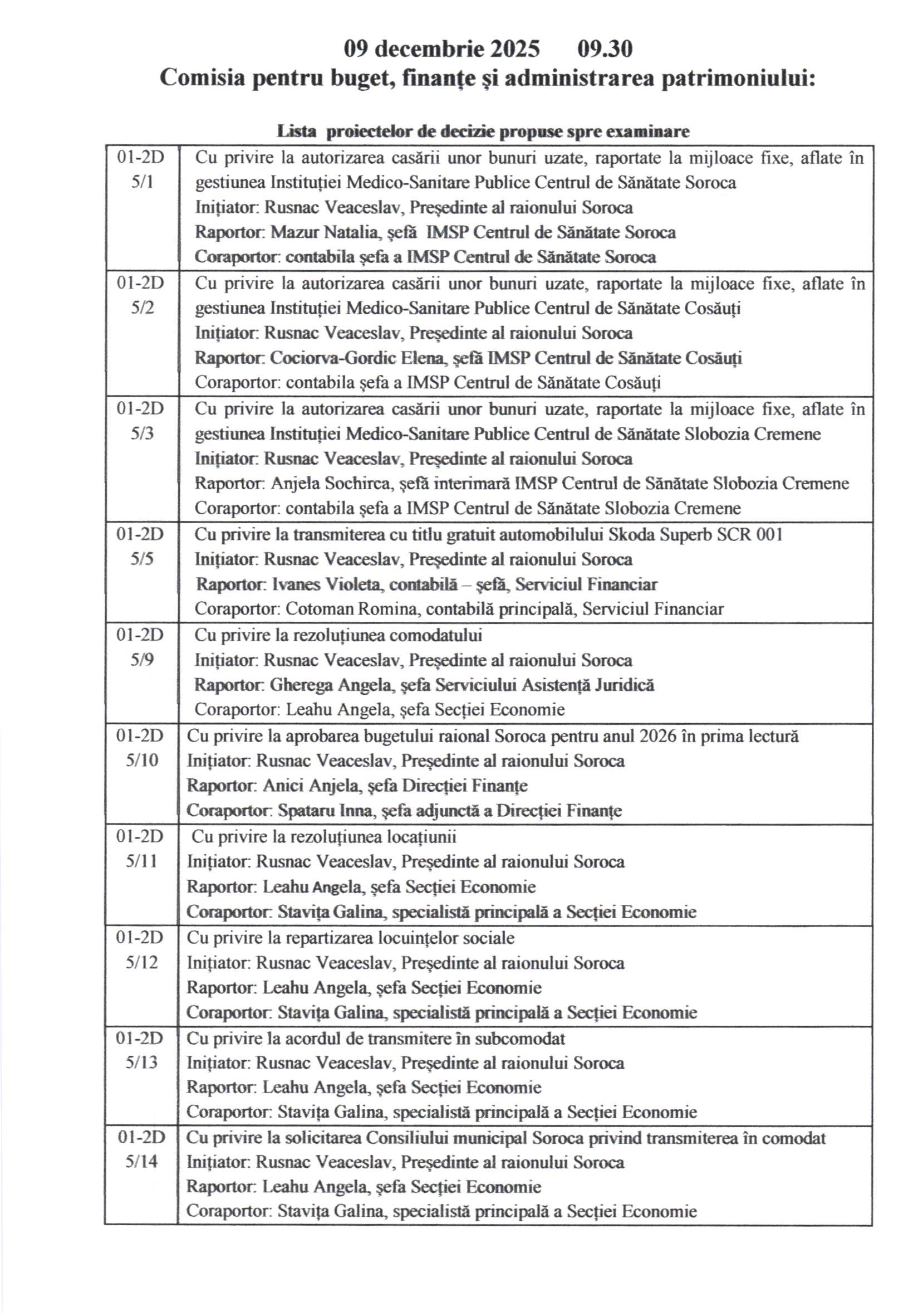 În conformitate cu prevederile art.45 alin.(1) și (3) din Legea nr.436/2006 privind administrația publică locală, cu modificările ulterioare, prin Dispoziția Președintelui Raionului Soroca nr.124 din 01 decembrie 2025, Consiliul Raional Soroca se convoacă în ședință extraordinară la data de 11 decembrie 2025, ora 1000 , în incinta Consiliului Raional Soroca, sala de ședințe, etajul I.
