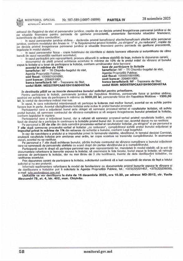 a) Data lansării concursului: 10 noiembrie 2025, ora 08.00;