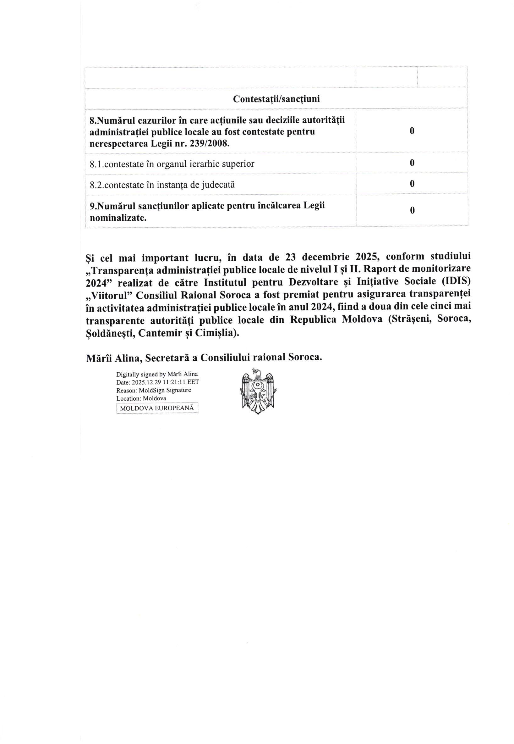 - Categorie: raport privind transparența procesului deciziional al CR Soroca