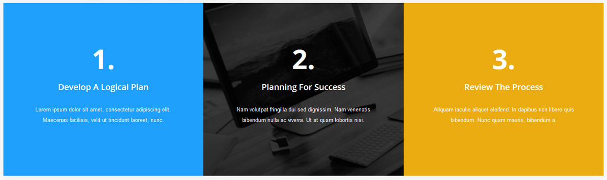 There are three different style slides to use. Each style is shown on the homepage of this demo. The first style aligns the text on the left and an image in the bottom right corner. The second style is the easiest to use, it aligns all text in the middle and uses no images. The third style is similar to the first, but it aligns the image in the center rather than the bottom right corner.