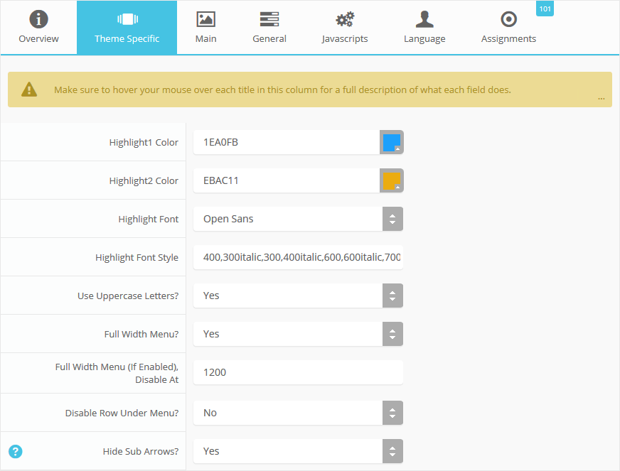 Every template built on Vertex also comes with its own unique template specific options applicable to that particular template such as highlight colors, social icons, and much more. These features are in addition to the standard functions of Vertex, and are still controlled through the very user friendly interface of Vertex. This page will document the features specific to this template.