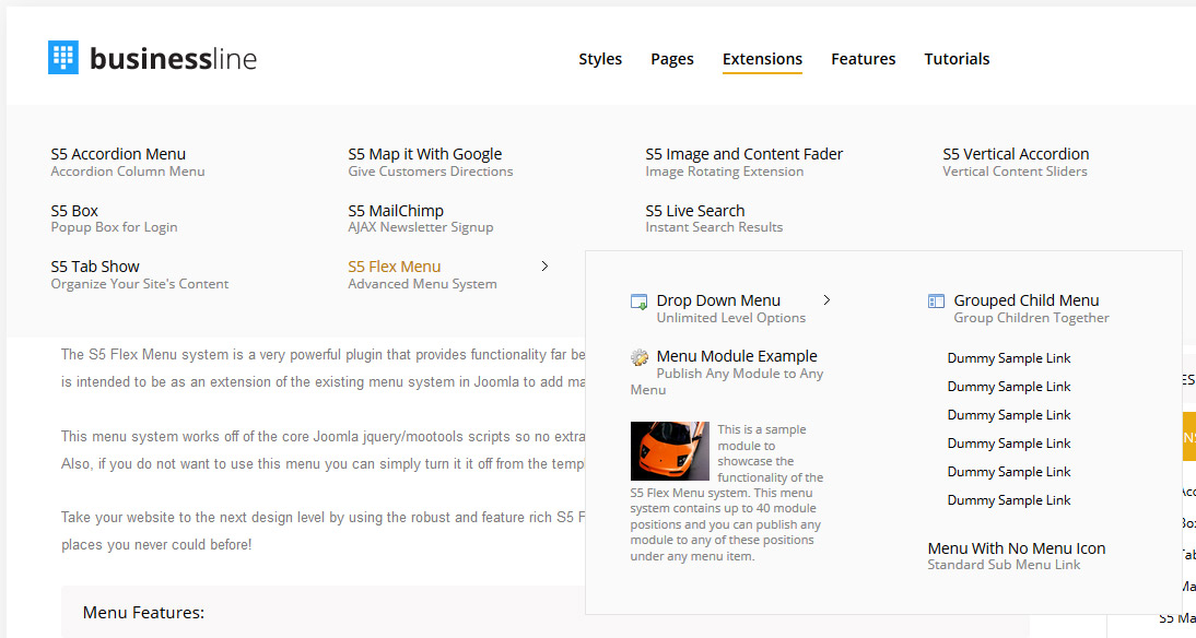 The S5 Flex Menu system is a very powerful plugin that provides functionality