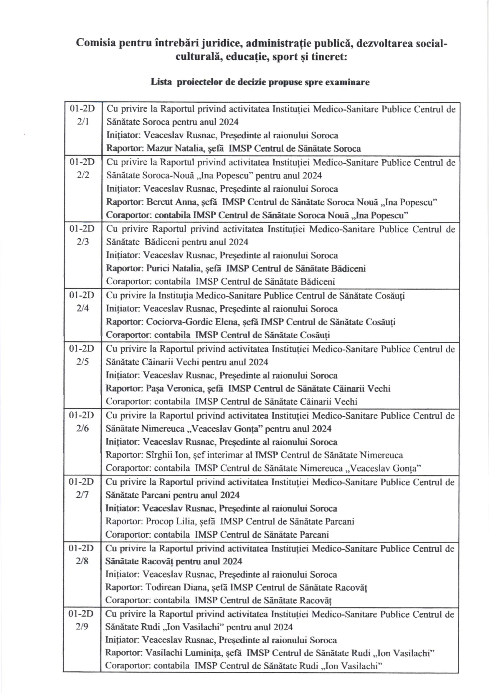 Proiectele de decizii și dosarele justificative sunt expediate pe poșta electronică a consilierilor raionali. Totodată, le puteți consulta pe pagina oficială: www.soroca.org.md