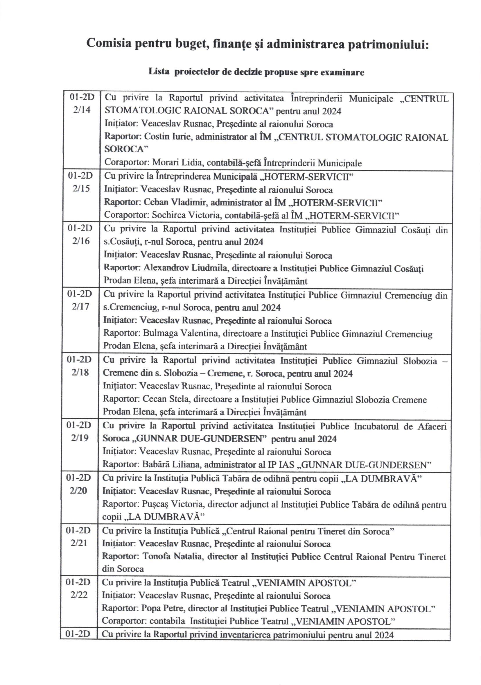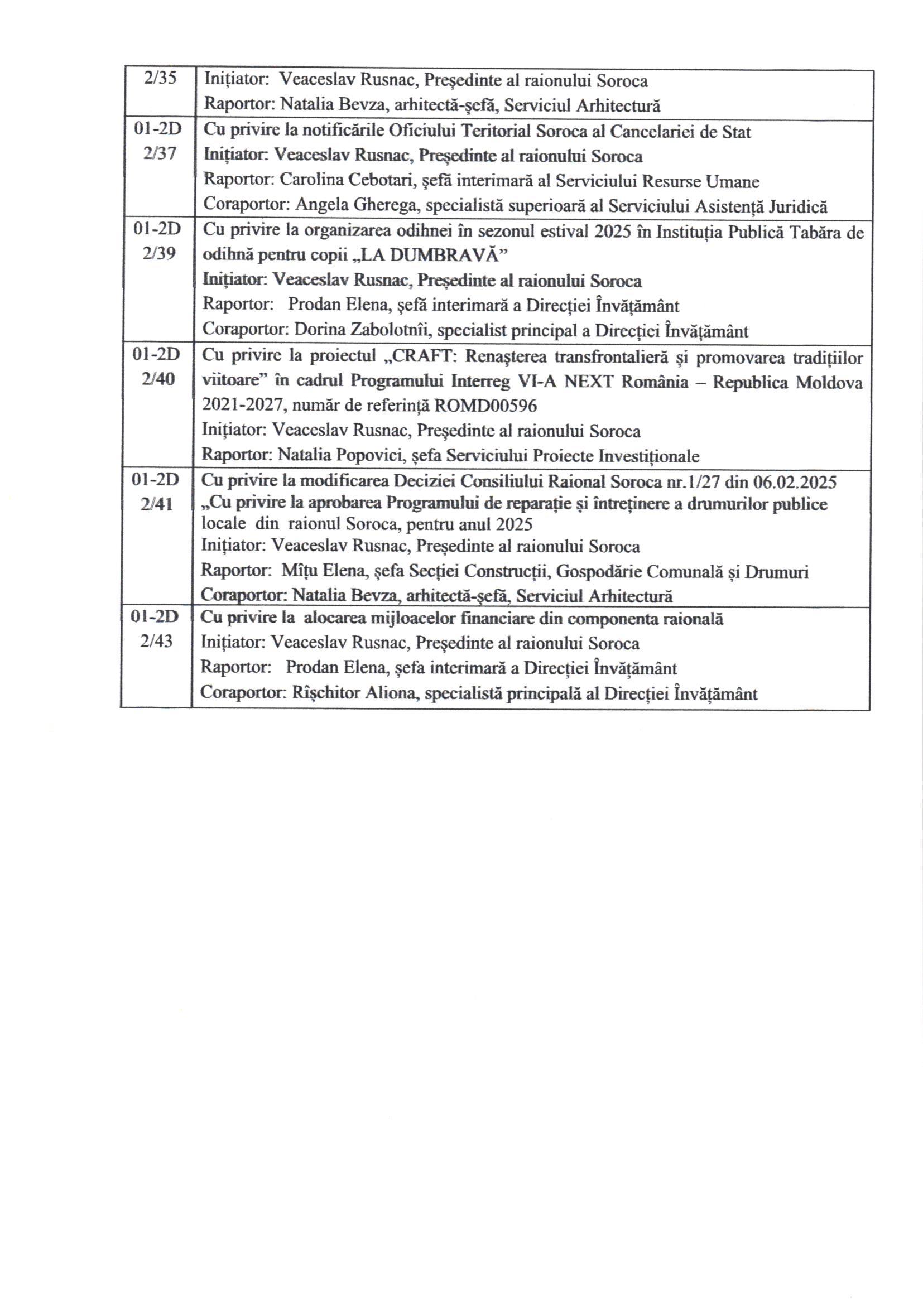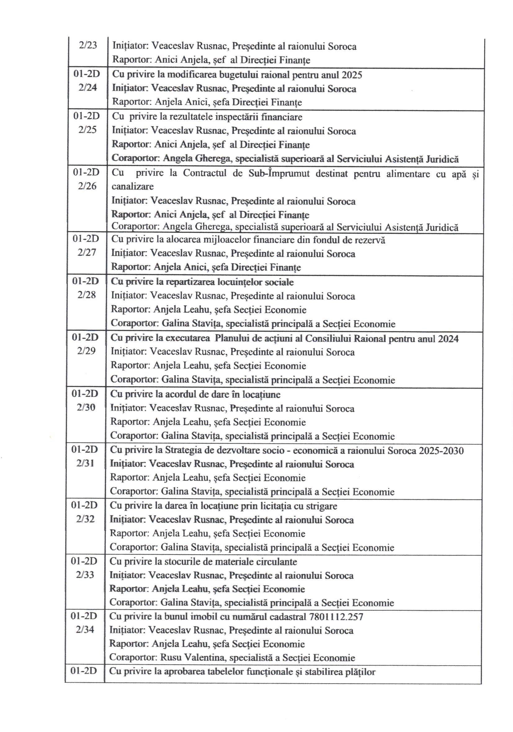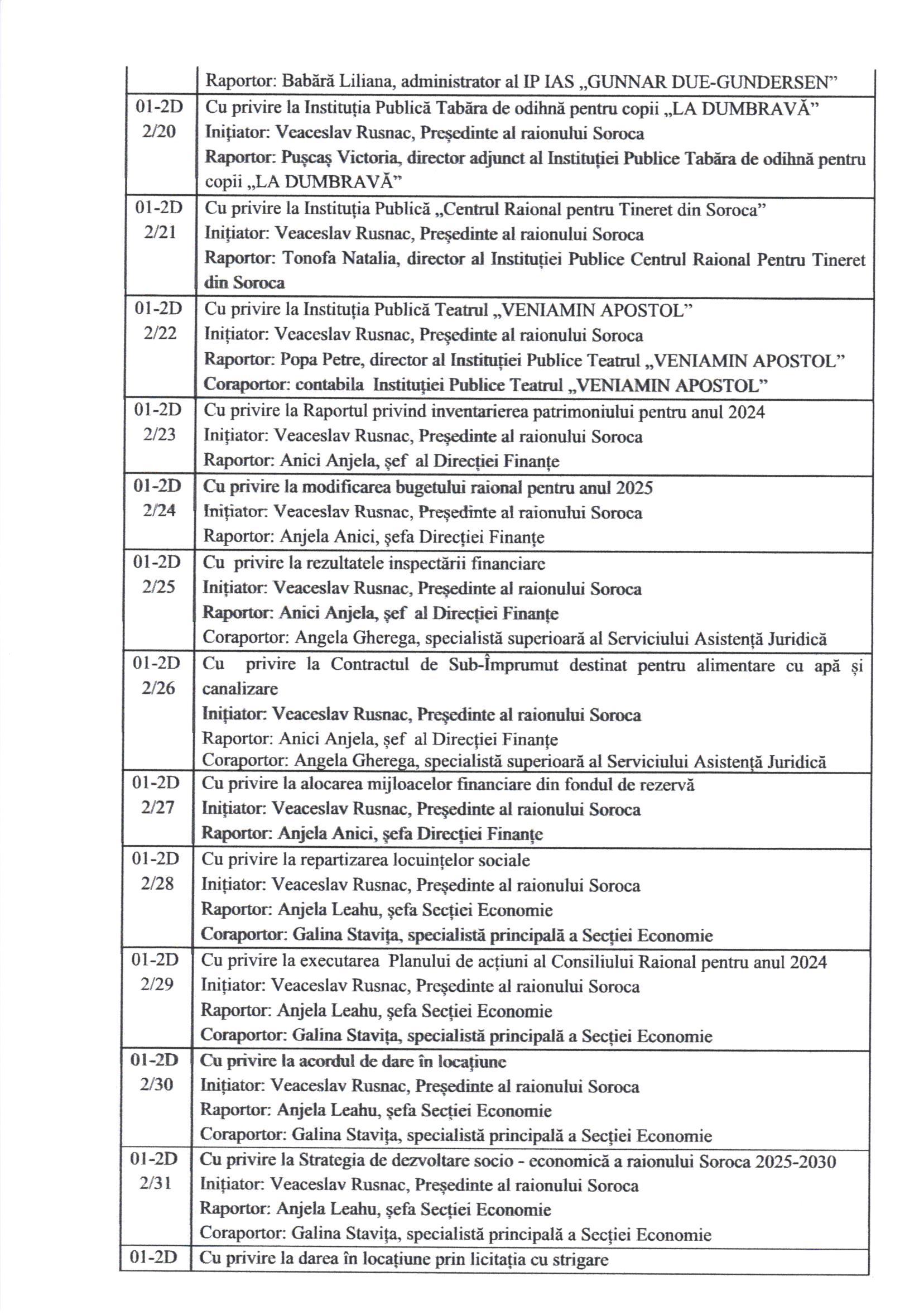 În conformitate cu prevederile art.45 alin.(1) și (3) din Legea nr.436/2006 privind administrația publică locală, cu modificările ulterioare, prin Dispoziția Președintelui Raionului Soroca nr. 46 din 11 aprilie 2025, Consiliul Raional Soroca se convoacă în ședință ordinară la data de 30 aprilie 2025, ora 10.00, în incinta Consiliului Raional Soroca, sala de ședințe, etajul I.