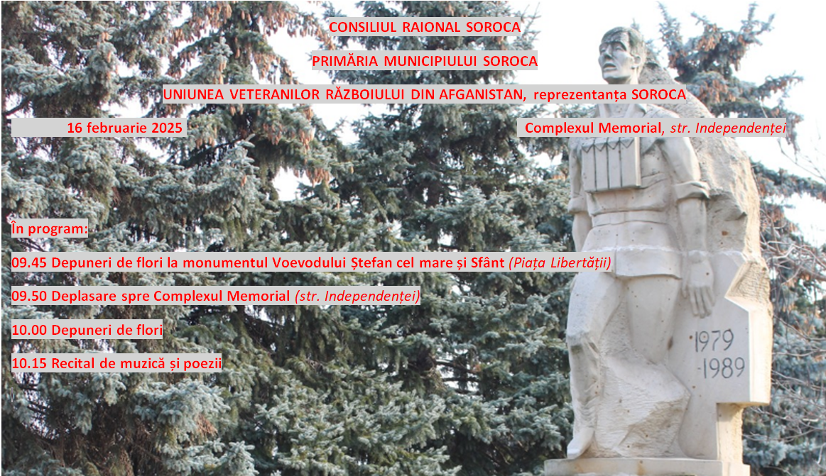 În data de 10 februarie 2025, orele 14.00, Președintele raionului Soroca dl Veaceslav Rusnac a convocat în ședință de lucru membrii Comitetului organizatoric responsabil de organizarea și desfășurarea activităților din 14 februarie 2025 privind omagiul poetului național Grigore Vieru (90 de ani de la naștere) și 16 februarie 2025 – Ziua comemorării celor căzuți în războiul din Afganistan.