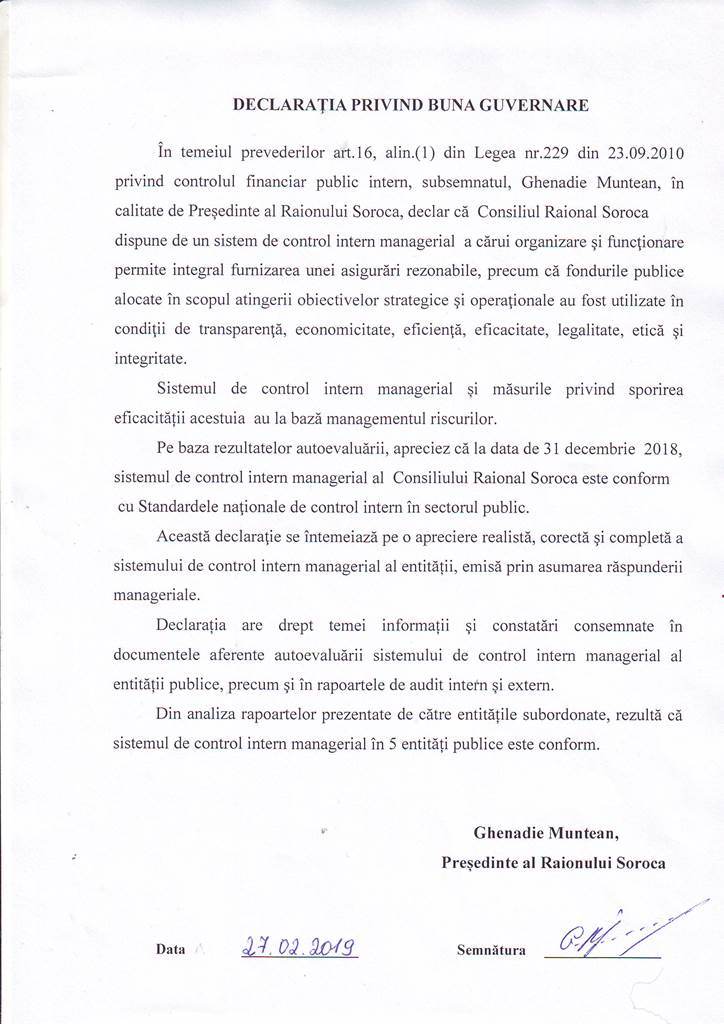 DECLARAȚIA PRIVIND BUNA GUVERNARE