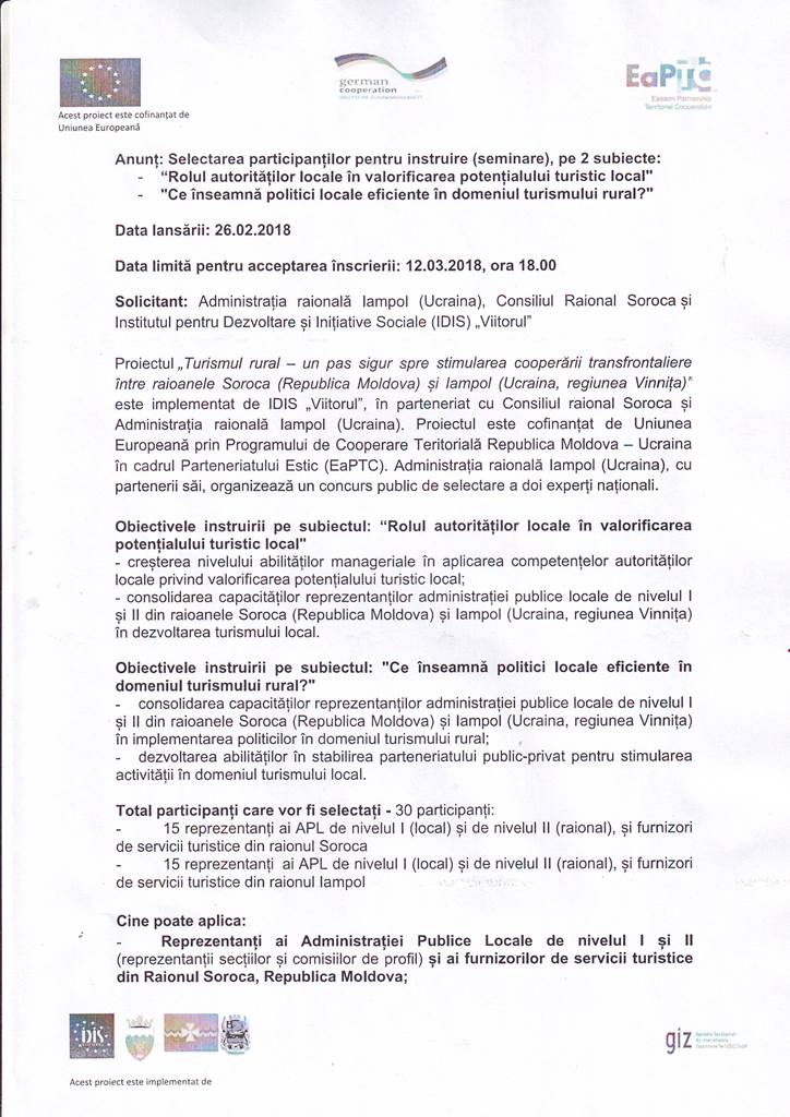 Consiliul Raional Soroca anunţă concurs de ocupare a funcţiei vacante de șef al IMSP Centrul de Sănătate: Racovăț, Rublenița, Rudi, Vădeni.