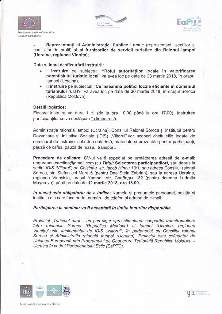Dosarele de participare la concurs, întocmite conform prevederelor Regulamentului de organizare a concursului pentru ocuparea funcțiilor vacante de conducător al instituției publice/ întreprinderii municipale fondate de consiliul raional (Decizia Consiliului Raional Soroca nr.10/10 din 16.08.2016) se primesc la sediul Consiliului Raional Soroca, str. Ştefan cel Mare, 5, (et.5, bir.511), telefon 0-230-2-20-26, e-mail carolina.1985@mail.ru