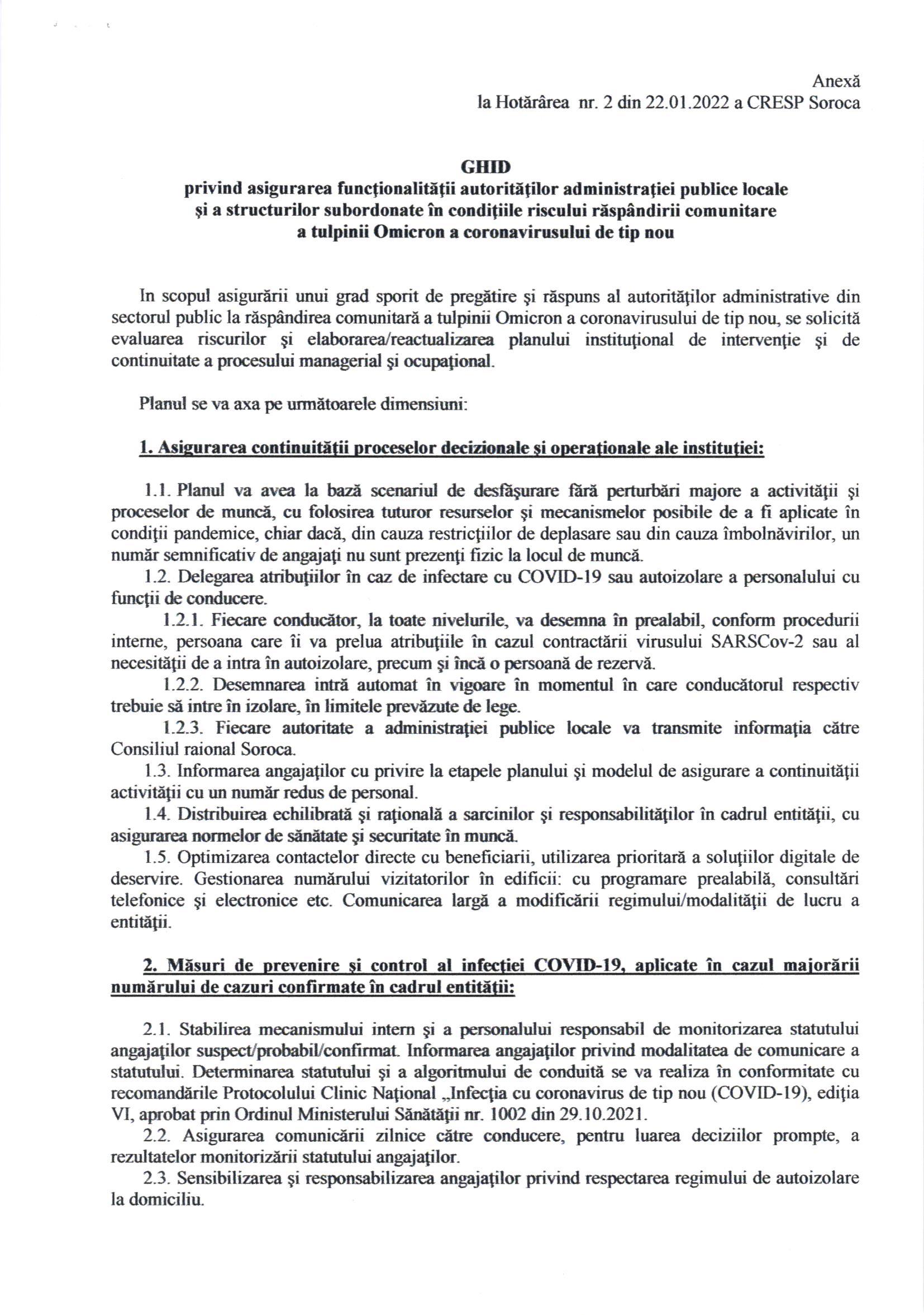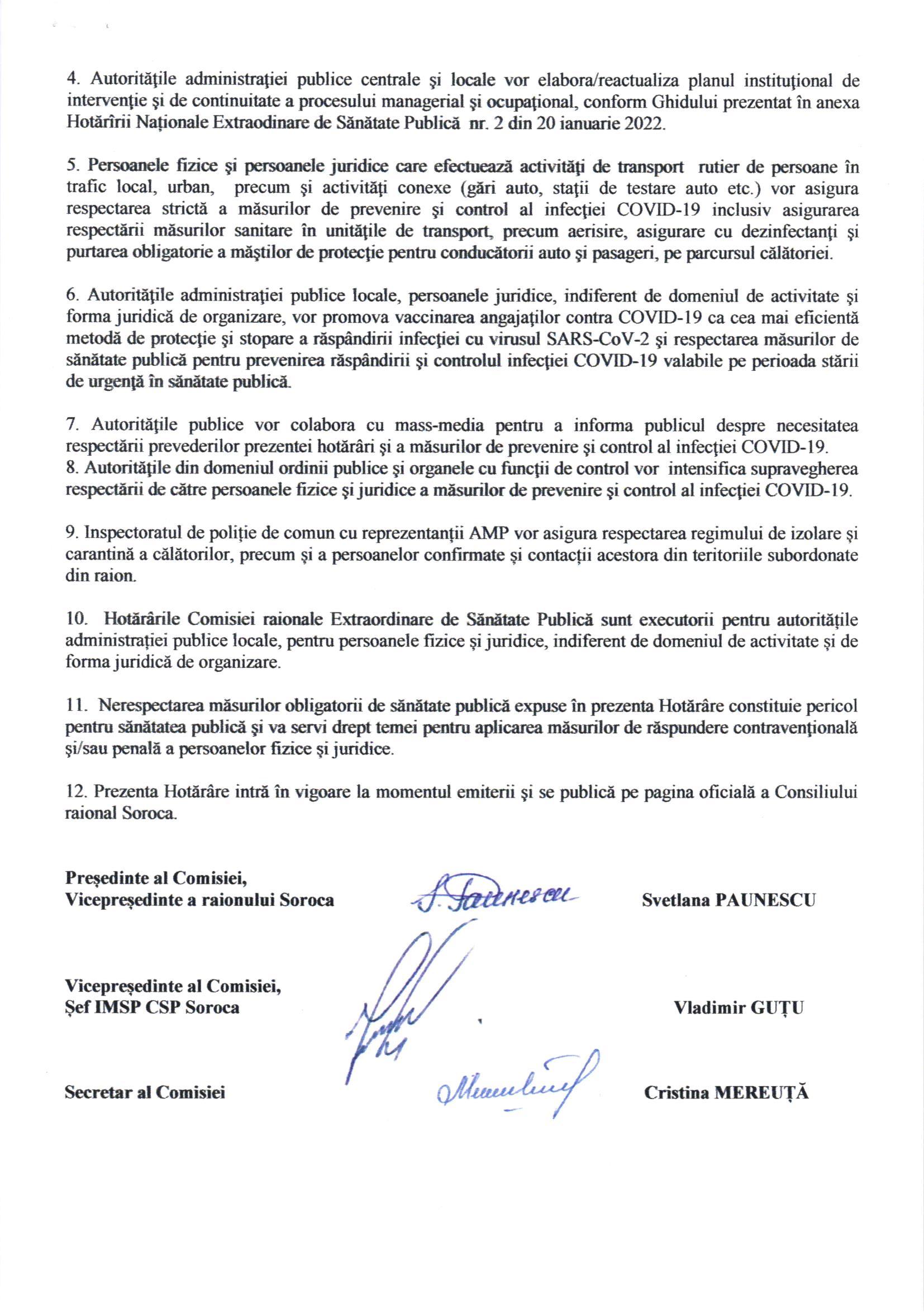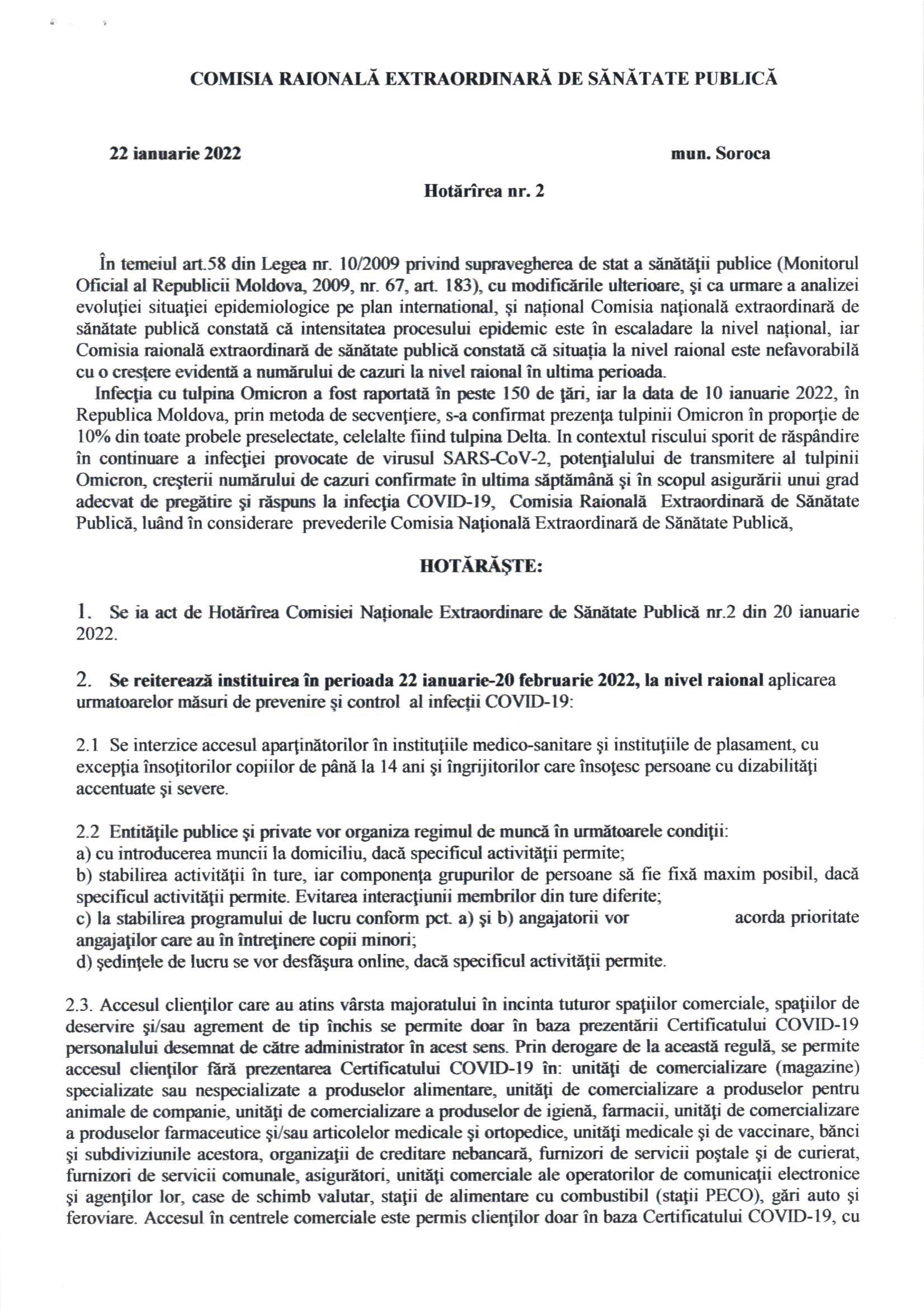 Hotărârea Comisiei Raionale Extraordinară de Sănătate Publică nr. 2 din 22 ianuarie 2022