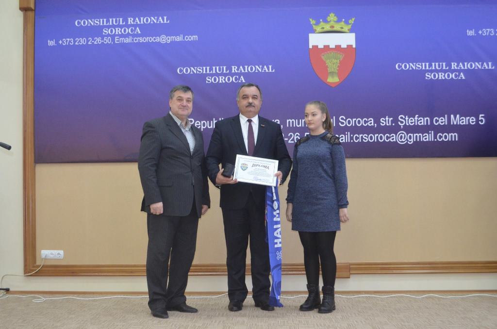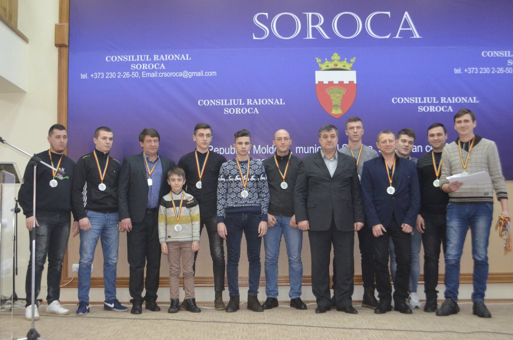 Cu medalii ”Meritul Fotbalului Sorocean” au fost decernați: Nicuța Vladimir, Vicepreședinte al raionului Soroca - degrevat, Jitniuc Andrei, specialist principal, Serviciul Tineret și Sport, Borozan Ion, Primar al s. Racovăț, Bacinin Pavel, antrenor de fotbal a ȘSR Soroca