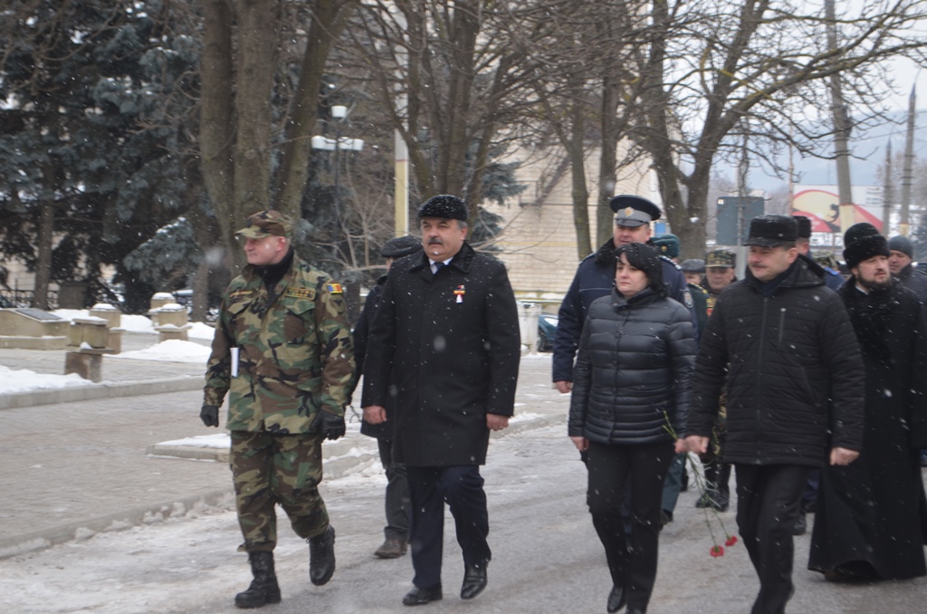 Evenimentul a culminat cu depuneri de flori la monumentul eroilor căzuţi la datorie, după care a fost organizată o masă de pomenire.