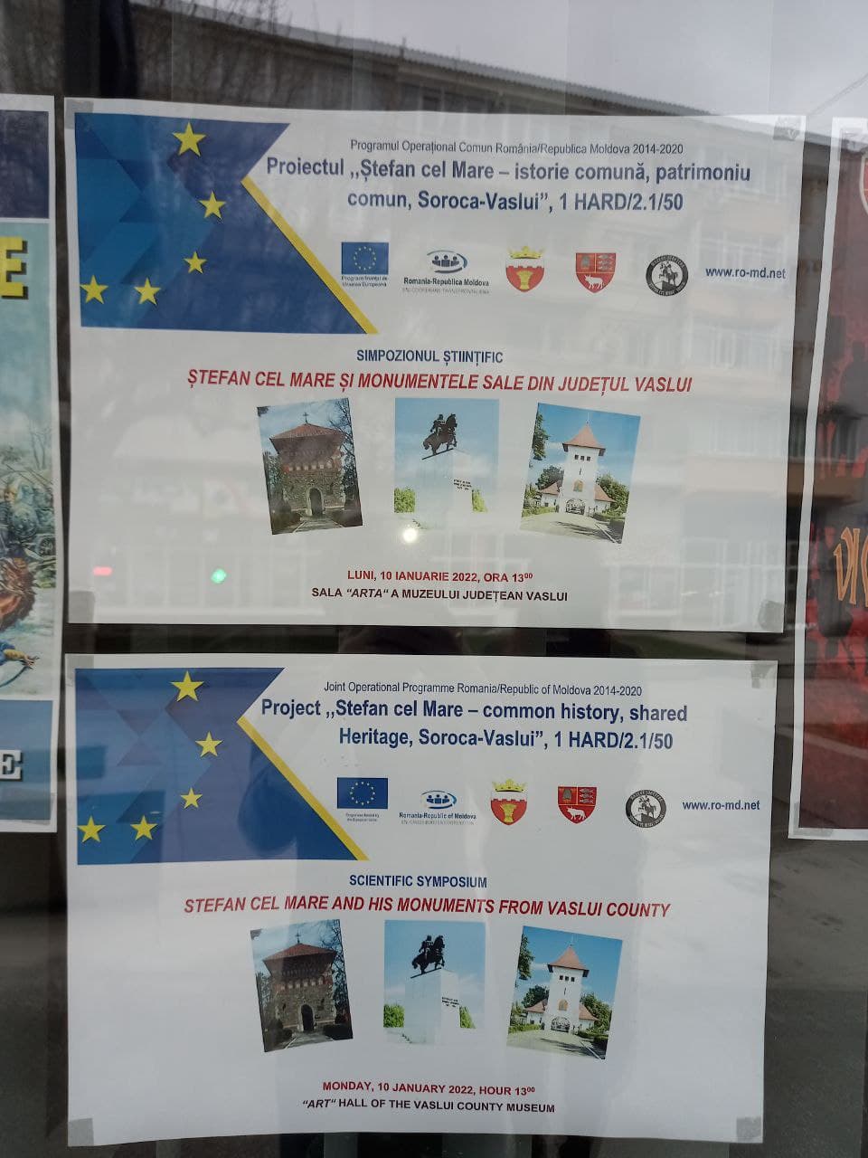 La data de 10 ianuarie 2022,în Sala ”Arta” a MuzeuluiJudețean ”Ștefancel Mare” Vaslui (România) a fostdesfășuratsimpozionul științific ”Ștefan cel Mare și monumentele sale din județul Vaslui”, eveniment transfrontalier organizat în cadrul Proiectului „Ștefan cel Mare – istorie comună, patrimoniu comun, Soroca-Vaslui” cod EMS-ENI 1HARD/2.1/50, finanțat de către Uniunea Europeană prin Programul Operațional Comun România-Republica Moldova 2014-2020.