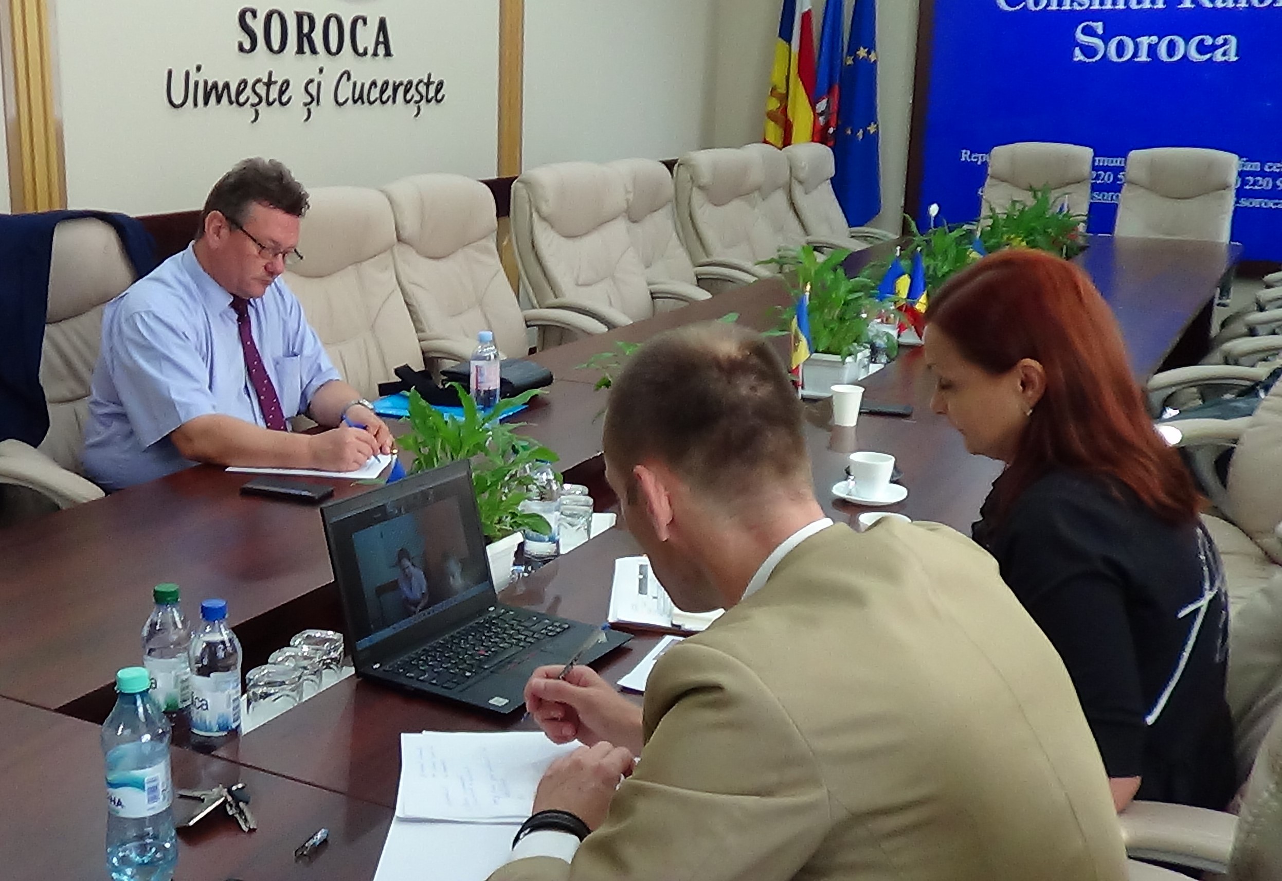 Ședința organizată de liderul de proiect, Consiliului Raional Soroca, s-a desfășurat cu prezența fizică a unei părți a Echipei de Implementare de la Muzeul Județean ”Ștefan cel Mare” Vaslui (România), iar membrii Echipei de Implementare de la Consiliul Județean Vaslui (România) au fost prezenți în format on-line. La ședință a participat și Președintele Raionului Soroca, domnul Veaceslav Rusnac. cel care a adresat un cuvânt de salut pentru oaspeții din România.