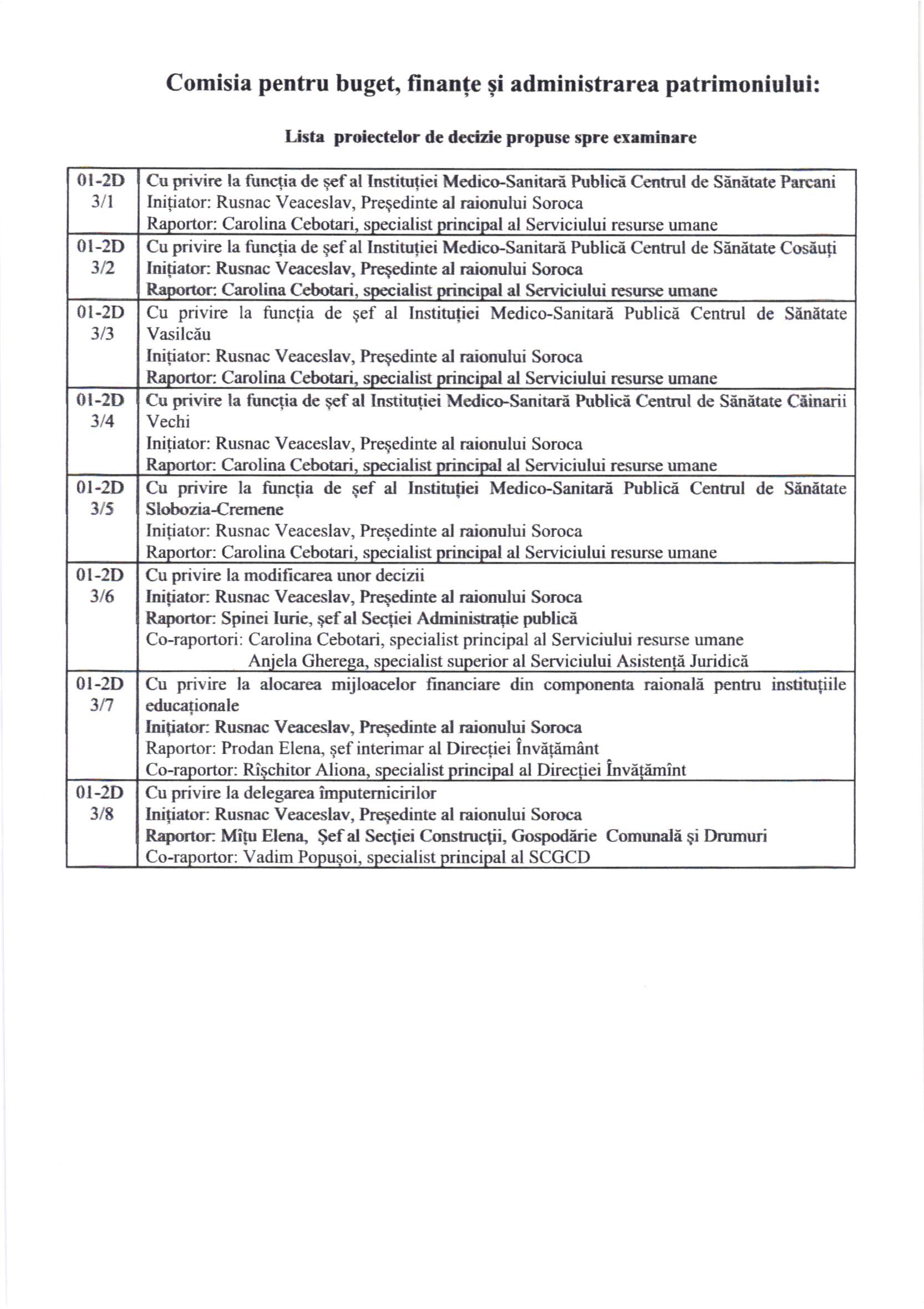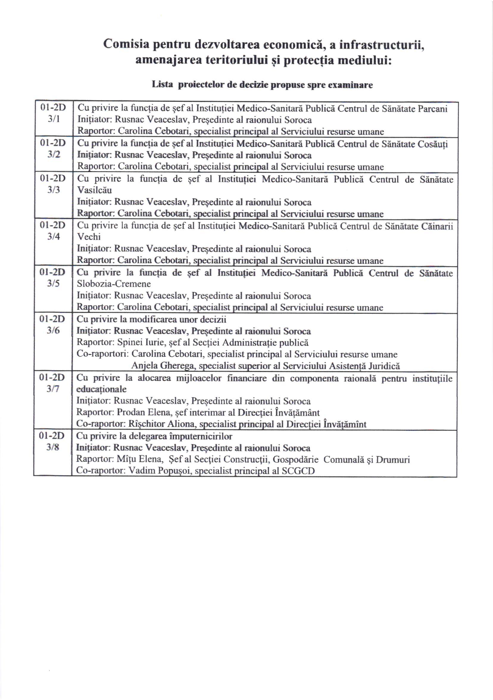 Astfel, Comisiile de specialitate ale Consiliului Raional Soroca se convoacă în ședință: