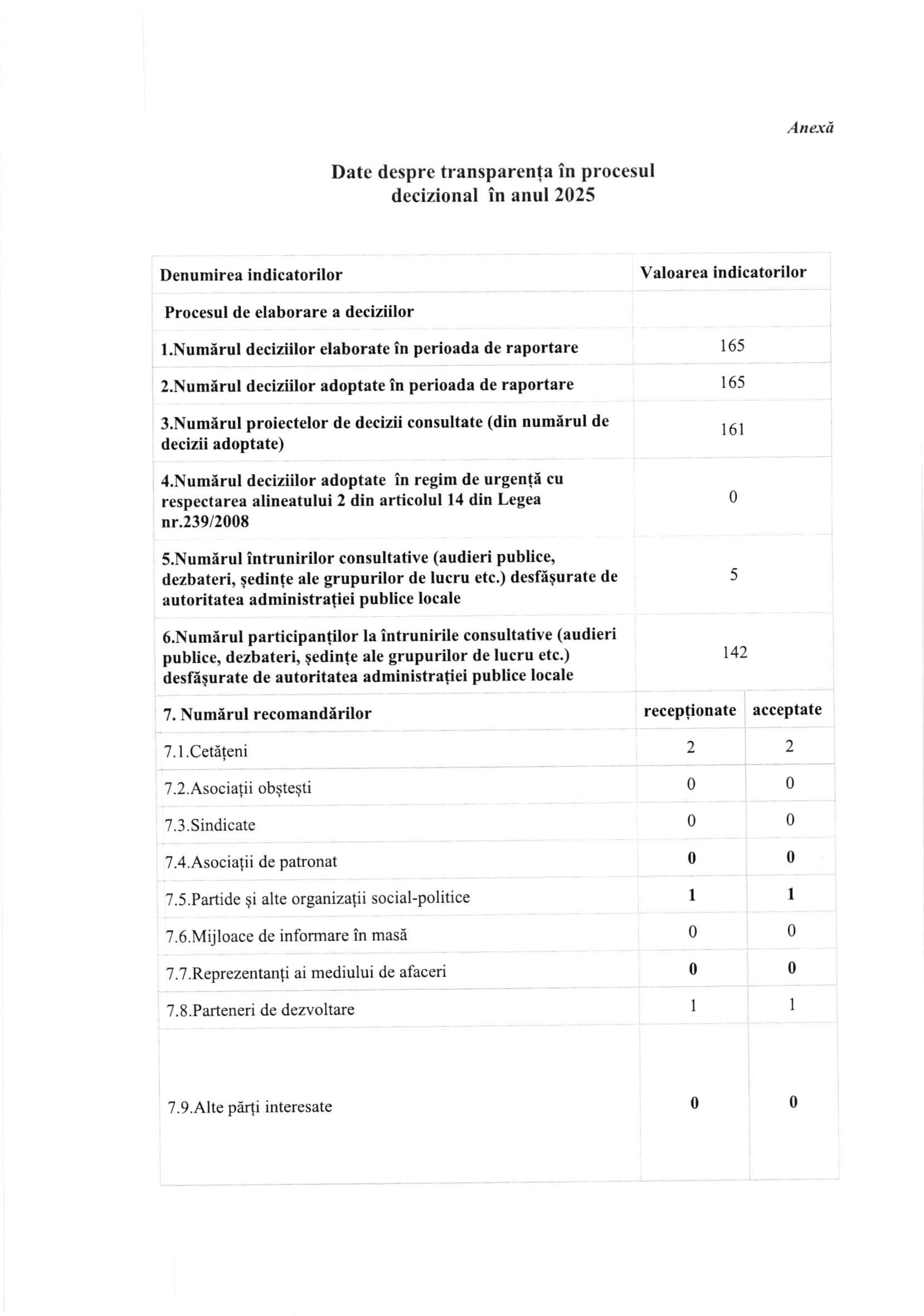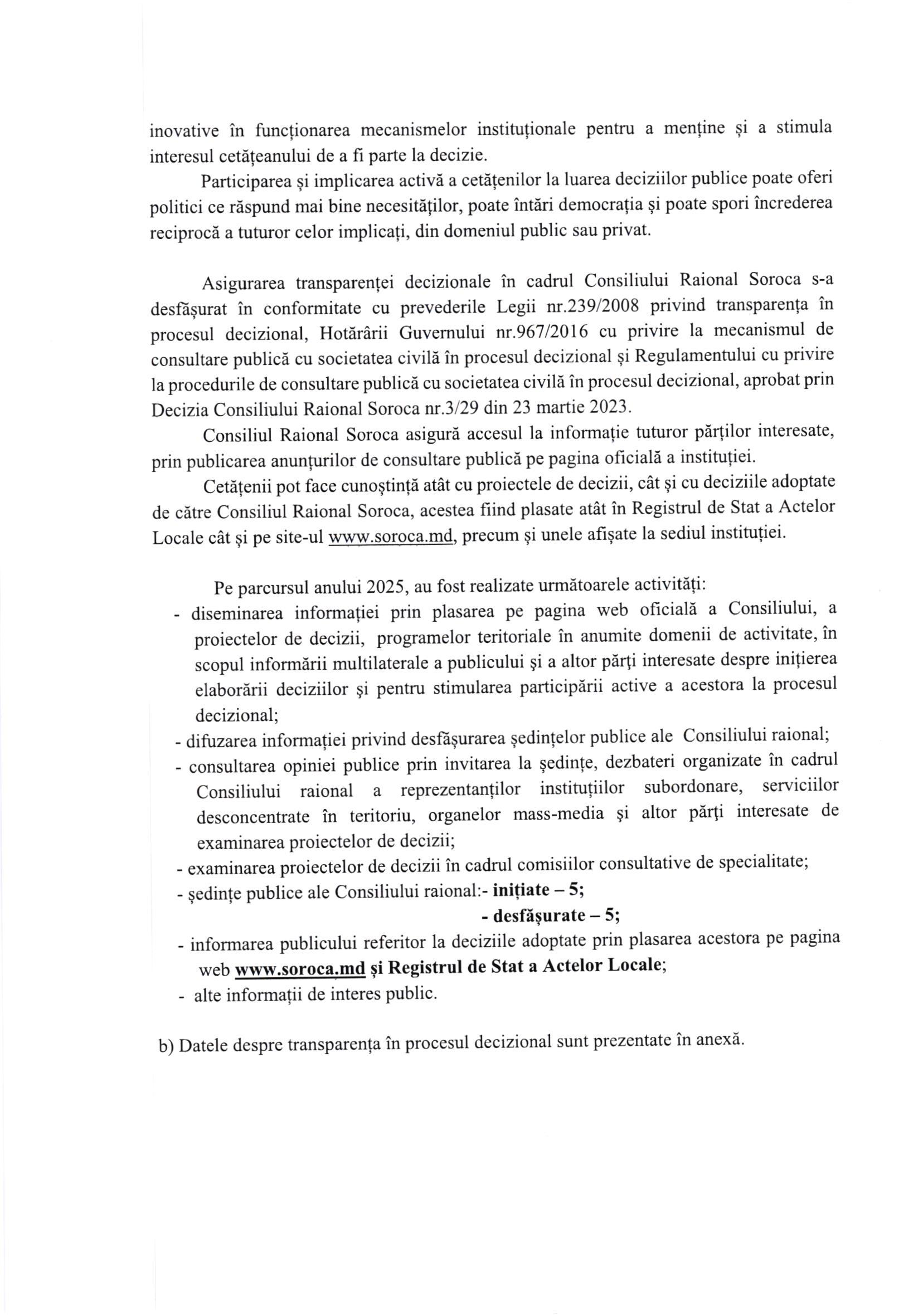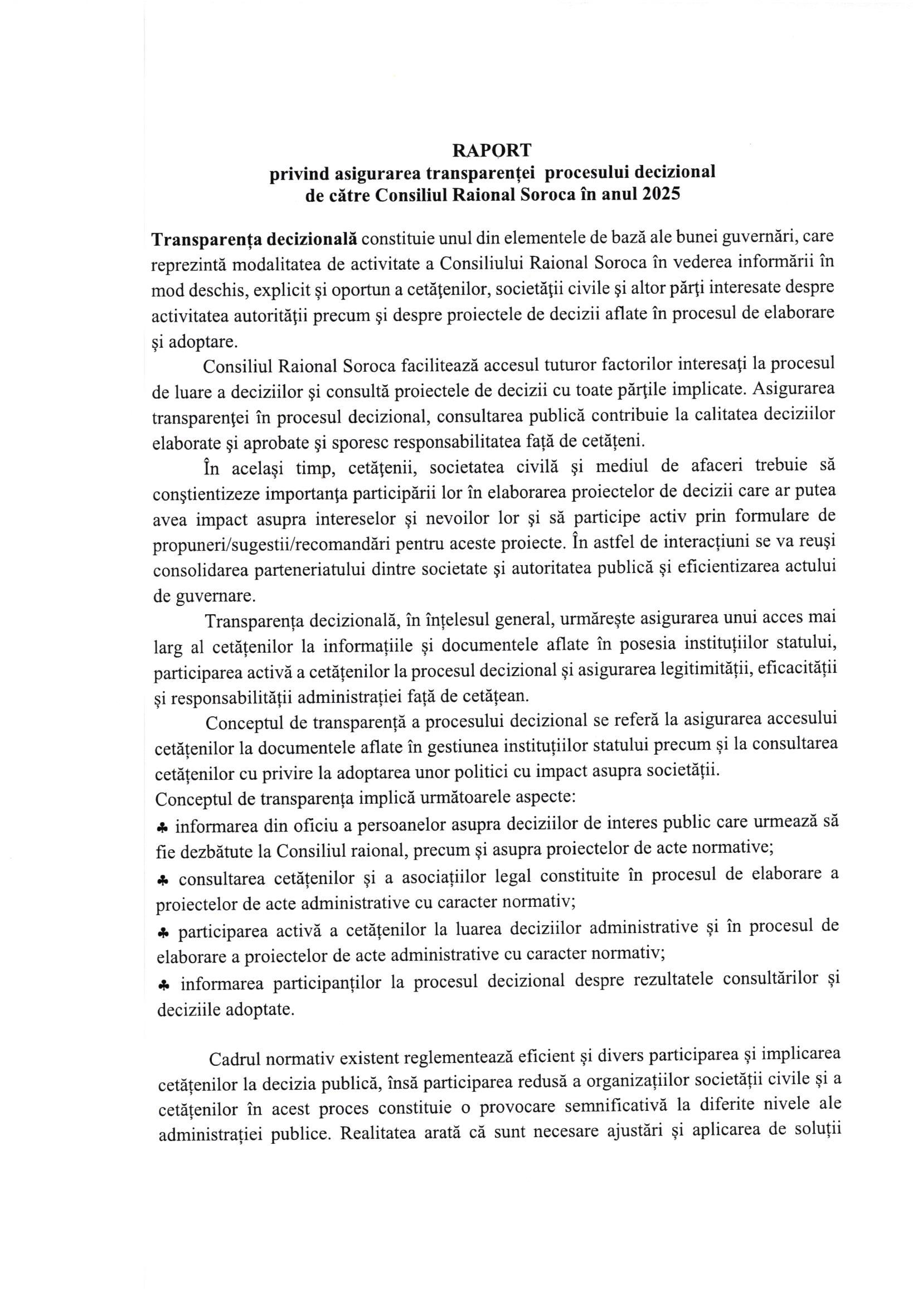 - Categorie: raport privind transparența procesului deciziional al CR Soroca