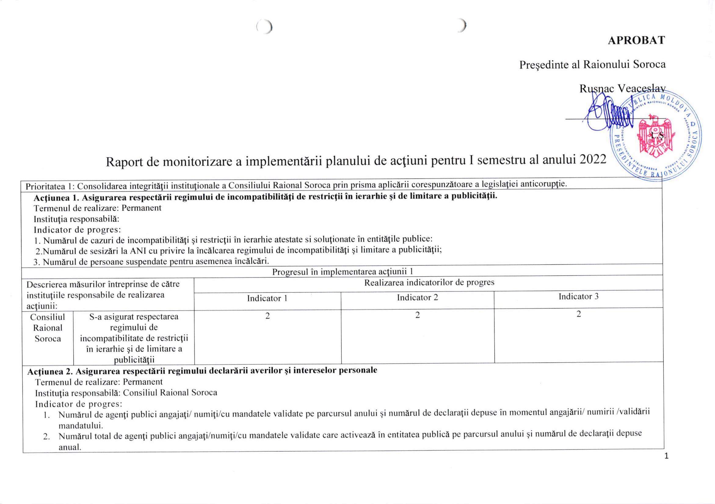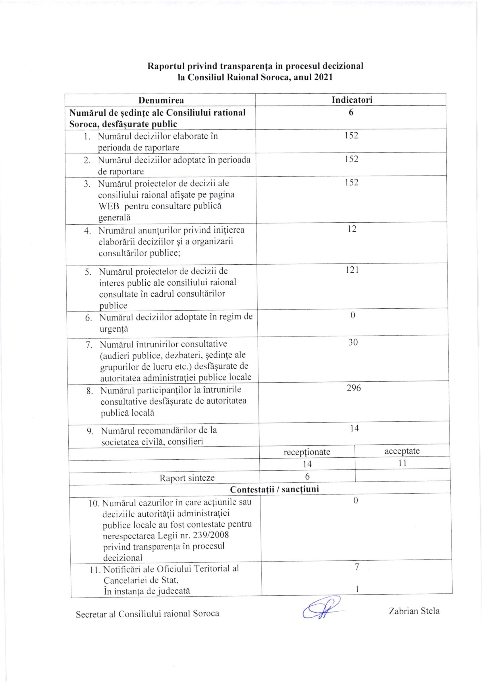 - Categorie: raport privind transparența procesului deciziional al CR Soroca