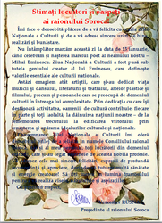 De către Secia Economie din cadrul Aparatului Președintelui raionului în parteneriat cu Camera de Comerț și Industrie, filiala Soroca în Piață a fost aranjată, spre atenția tuturor vizitatorilor, o expoziție a meșterilor populari, iar agenții economici au scos în vânzare cele mai gustoase copturi, fructe și legume, deasemenea nu au lipsit plăcintele, izvarul, dar și carnea coaptă la grătar.