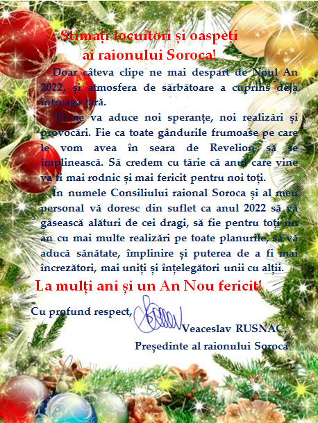 Devenit deja tradiție, TÂRGUL DE CRĂCIUN și Festivalul tradițiilor și obiceiurilor de iarnă “De urat v-am tot ura”, organizat de către Secția Cultură și Turism a Consiliului rational Soroca în parteneriat cu Primăria municipiului Soroca, a adunat din nou la data de 25 decembrie 2021, în Piața Libertății din mun. Soroca, lume bună și lume frumoasă.