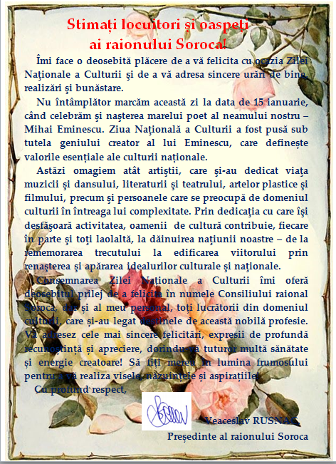 Evenimentul a început cu o paradă a măştilor cu participarea elevilor instituțiilor de învățământ și ansamblurilor folclorice din raion. În cadrul ceremoniei de deschidere a evenimentului, Președintele raionului dl Veaceslav Rusnac, primarul municipiului Soroca dna Lilia Pilipețchi și deputatul în Parlamentul Republicii Moldova dna Alla Pilipețcaia, au venit cu mesaje de felicitare pentru toți locuitorii și oaspeții raionului Soroca.