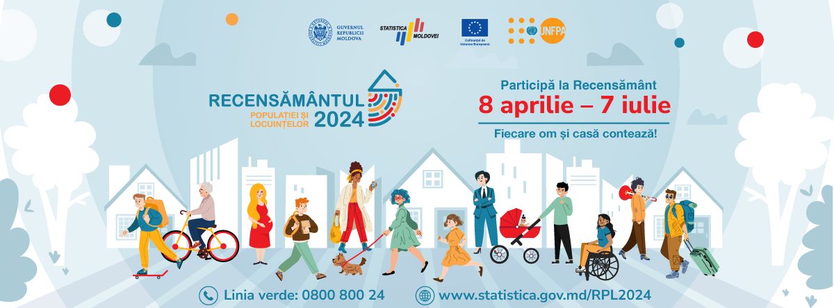 În perioada 8 aprilie -7 iulie 2024 în Republic Moldova se va desfășura Recensământul populației și locuințelor (RPL). Recensământul este o cercetare de amploare națională care are loc o dată la 10 ani. Scopul recensământului este obținerea de date statistice privind numărul și distribuția teritorială a populației și locuințelor țării. În cadrul recensământului, sunt colectate date cu privire la fiecare persoană din gospodărie (de exemplu: anul și locul nașterii, locul de trai, limba vorbită, nivelul educației, ocupația ș.a.), cât și date despre locuință (cum ar fi dotarea cu sistem de canalizare și aprovizionare cu apă, modul de încălzire, suprafața și materialele de construcție a locuinței ș.a.).