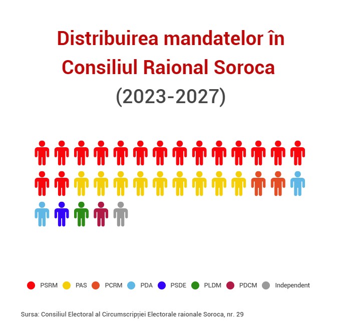 În data de 22 noiembrie 2023 în sala de Protocol a Consiliului Raional Soroca, în contextul Alegerilor Locale Generale din 05 noiembrie 2023 Consiliul Electoral de Circumscripție Electorale raionale Soroca nr. 29 conform Hotărârii nr. 21/1 a validat și atribuit mandatele de consilier și declarat candidații suplianți în Consiliul Raional Soroca, după cum urmează: